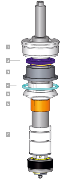Unser modulares Dichtungssystem übertrifft die üblichen OEM Standards. Mittels Aluminiumverschraubung lässt es sich einfach öffnen und ermöglicht dadurch nachträgliche, kundenspezifische Anpassung der Ventiltechnik oder der Hubverhältnisse.