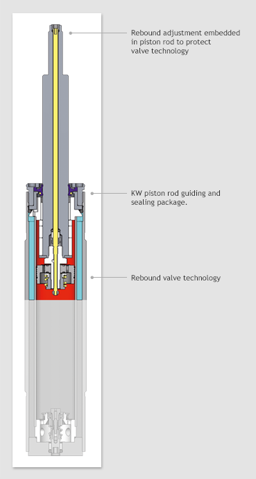 Die patentierte KW Ventiltechnik für die getrennte Abstimmung der Zug- und Druckstufe erlaubt es Ihnen die fahrzeugspezifische Grundabstimmung von KW individuell anzupassen.